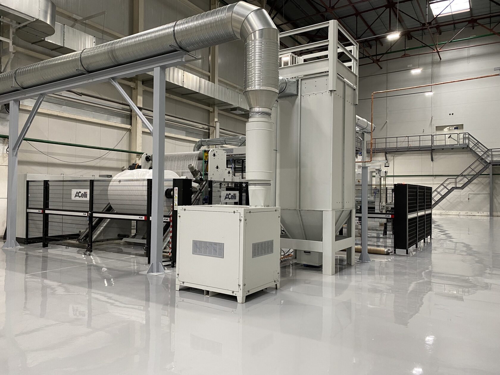The lines configuration allows production of nonwoven material with a fiber thickness to 1 denier, with high barrier properties and strength characteristics essential for the babies’ diapers, feminine hygiene, adult incontinence products and medical